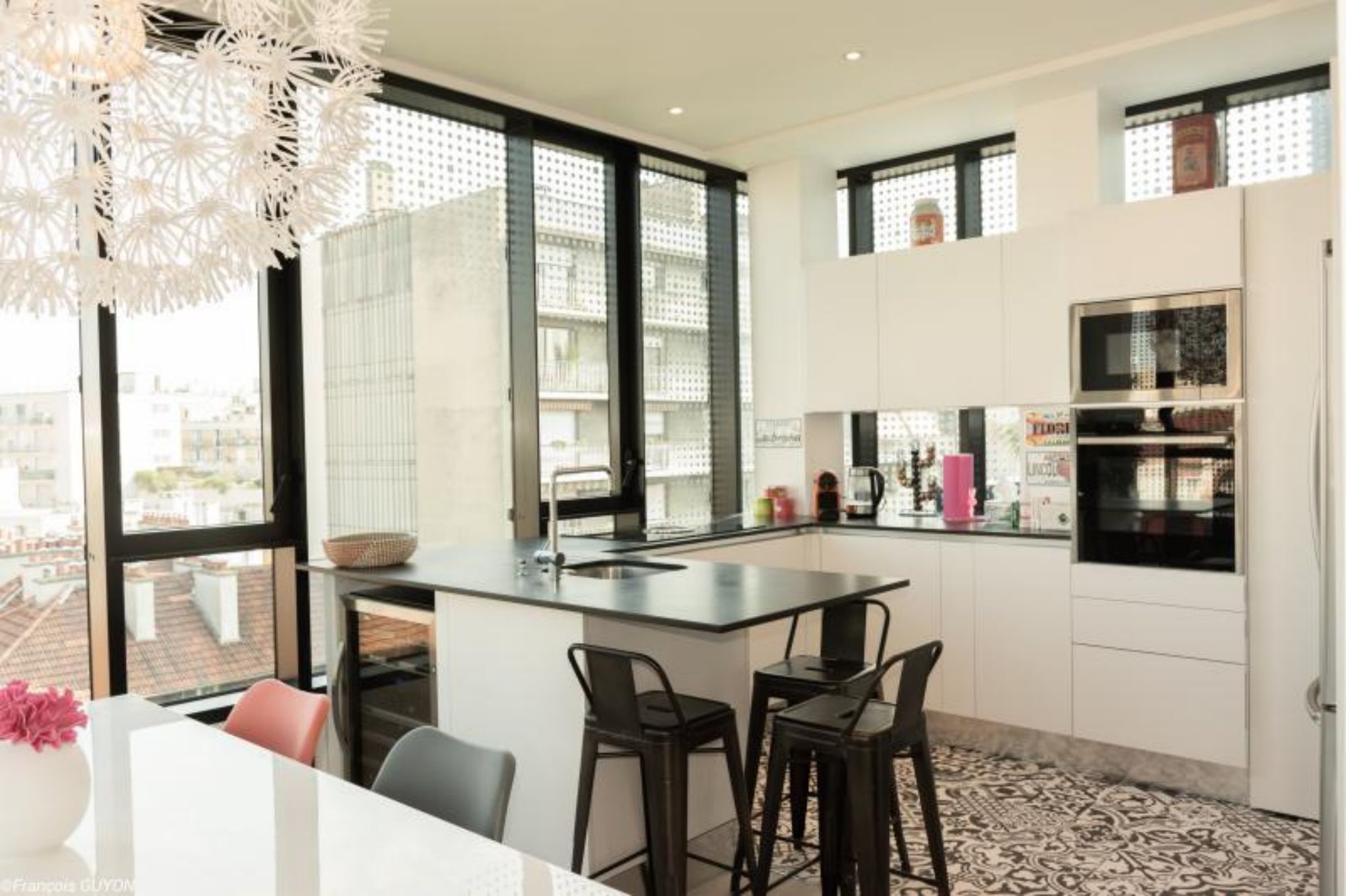 Amenagement interieur de sept appartements (surface totale 450 m²) en collaboration avec Sarah Landa Architecture dans l'immeuble Nuages réalisé par l'agence Parisienne X-TU architects.